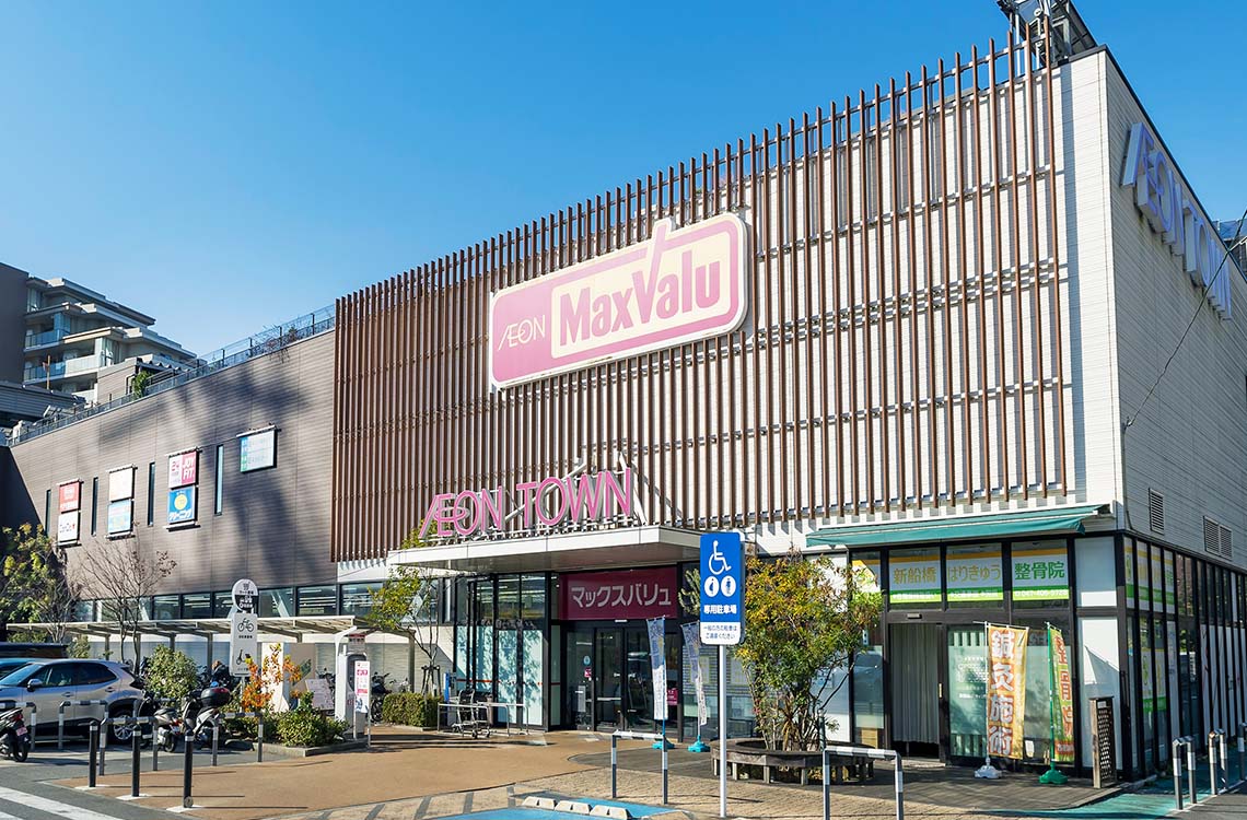 駅を挟んだ東西に「イオンタウン新船橋」·「イオンモール船橋」が揃う、「新船橋」駅周辺。ホームセンターや家電量販店など大型店舗が多く、車でのお買い物も快適です。